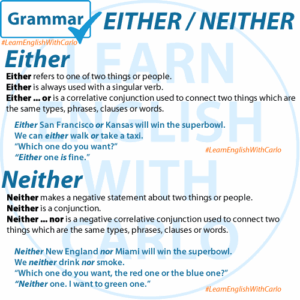 GRAMMAR – Either & Neither