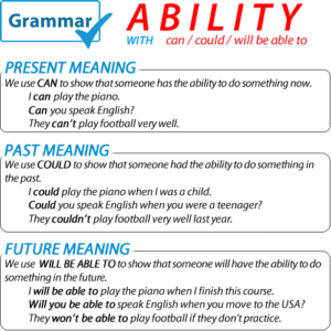 GRAMMAR – ABILITY using CAN, COULD, & WILL BE ABLE TO