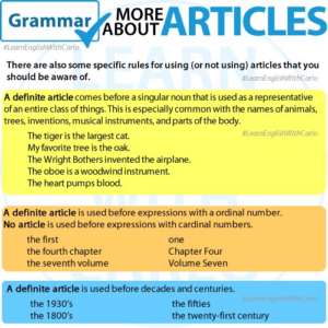 GRAMMAR – More about Articles