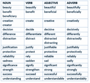 Welcome to our guide on how words can take different forms as nouns, verbs, adjectives, and adverbs! Many words in English change form depending on their role in a sentence, and understanding these transformations is key to mastering grammar and building vocabulary. Here you’ll find tables that show how specific words change across these categories, …