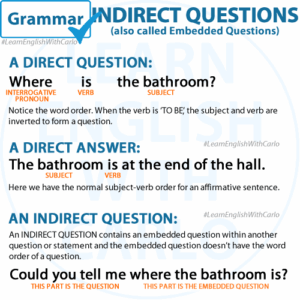 Indirect questions are a polite and often more formal way of asking questions. They differ from direct questions in their structure and use. Let’s break down what indirect questions are, how to form them, and provide examples to illustrate their use. What Are Indirect Questions? Indirect questions are questions embedded within statements or other questions. …