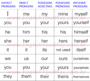 1. Subject Pronouns: Subject pronouns are used when the pronoun is the subject of the sentence, meaning it performs the action of the verb. They replace nouns as the doers of the action. Here are the subject pronouns in English: For example: 2. Possessive Adjectives: Possessive adjectives show ownership or possession. They come before a …