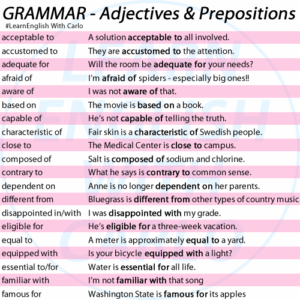 Adjectives are words used to describe a person, place, or thing.For example: The tall man in the red shirt is a friend of mine. We drove along a quiet road until we reached a small town. I’m reading an interesting book. Prepositions are words used to connect two ideas or to demonstrate the relationship between …