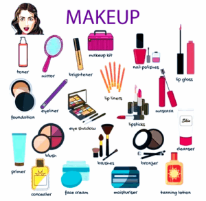 Makeup is a billion dollar industry and there are many different types. Here are a few items of makeup and accessories: Toner Mirror Brightener Makeup kit Nail polish Lip gloss Foundation Eyeliner Eye shadow Lip liner Lipstick Mascara Primer Bluch Concealer Face cream Brushes Moisturizer Bronzer Tanner Cleanser Can you think of any other …