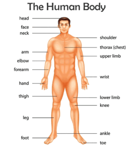 The human body is made up of a lot of individual parts some of which are in pairs. Here are the parts in the image: A head A face A neck Two shoulders A chest Two arms (shoulder to hand) Two upper arms Two forearms (lower arms) Two elbows Two wrists Two hands Ten fingers …