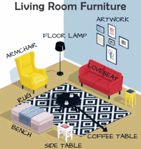 The living room is one of the most important spaces in a home. It’s where families gather, guests are entertained, and relaxation happens. Knowing the vocabulary for common living-room furniture can help you describe your space accurately, whether you’re decorating, moving, or simply talking about your home. This post will introduce you to essential living-room …