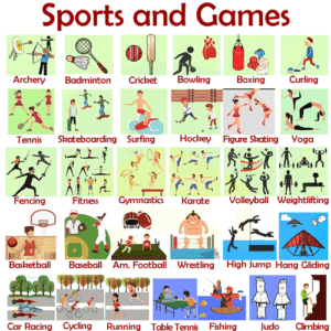 We all need to exercise to keep our bodies healthy, but few of us do enough. What exercises and games do you play? Here are some that we’ve put in this slide (with the verb that’s used with them in parentheses): (practice) Archery, (play) badminton, (play) basketball, (play) Beach volleyball, (practice) boxing, (go) canoeing, (go) …