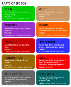 One of the building blocks of grammar is understanding the different parts of speech. Here’s a brief overview: