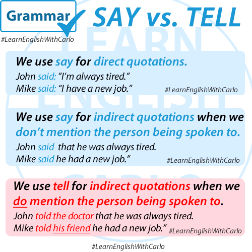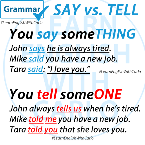 SAY and TELL have similar meanings. They both mean to communicate verbally with someone. But we often use them differently.