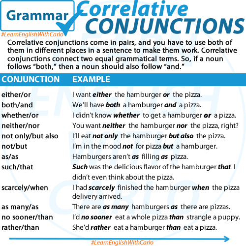 3. Correlative Conjunctions: These conjunctions work in pairs to join similar sentence elements. Common correlative conjunction pairs include “either…or,” “neither…nor,” “both…and,” “not only…but also,” and “whether…or.” For example, “He can either come now or call later.”
