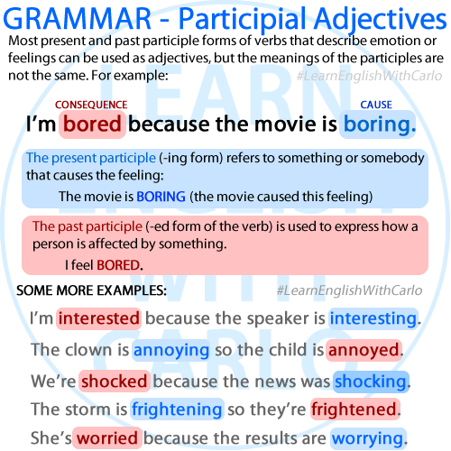 In English, many verbs that describe emotions or feelings can be transformed into adjectives by using their present or past participle forms. However, it’s important to note that these two forms convey different meanings. Let’s explore how to use these participial adjectives correctly.