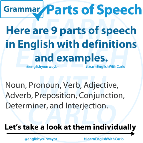 Here are 9 parts of speech in English with definitions and examples.