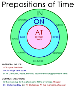 Understanding prepositions of time can be tricky, but they’re essential for clear and accurate communication. Let’s break down the use of “in,” “on,” and “at” with examples to make them easier to grasp. 1. IN Use “in” for longer periods of time, such as months, years, centuries, and long periods: 2. ON Use “on” for …